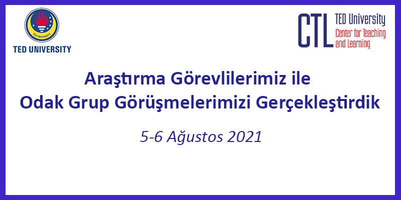 5-6 Ağustos 2021 tarihlerinde farklı fakültelerden araştırma görevlilerimizin katılımlarıyla gerçekleştirdiğimiz odak grup görüşmelerinde eğitim-öğretimde güçlü ve gelişime açık yönlerimiz ve araştırma görevlilerimize sunulabilecek destekler konularında fikir alışverişinde bulunduk.