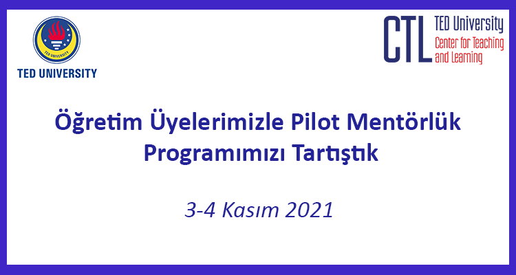3-4 Kasım 2021 tarihlerinde farklı fakültelerden öğretim üyelerimizin katılımıyla 2022 Bahar Döneminde gerçekleştirmeyi planladığımız öğretim üyesi mentörlük programımızı değerlendirdik. Dünyada önde gelen üniversitelerin mentörlük programlarının incelendiği toplantıda, öğretim üyelerimizin mentörlük programından beklentileri ve TED Üniversitesi için model önerisi taslağı değerlendirildi.